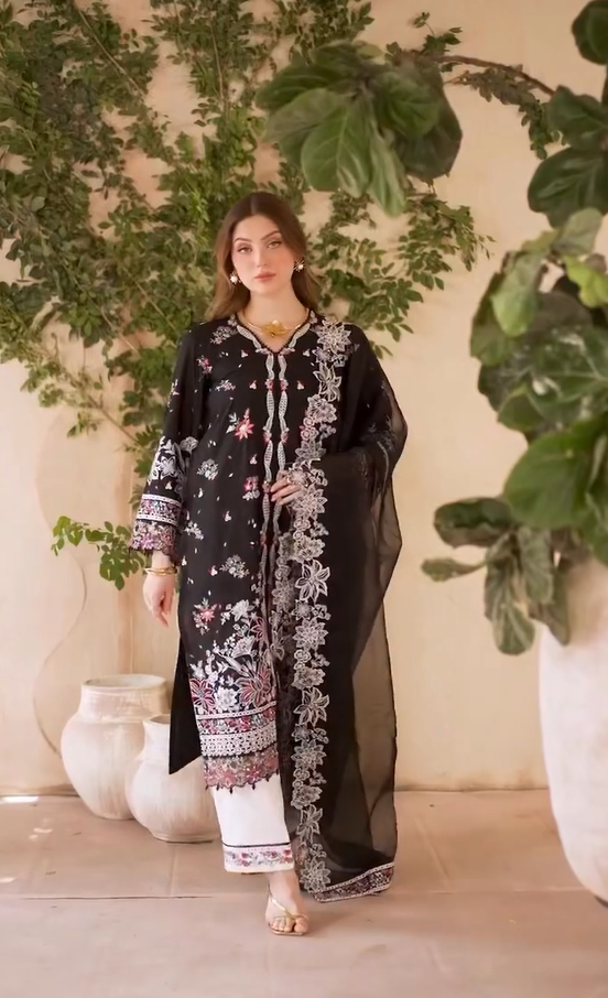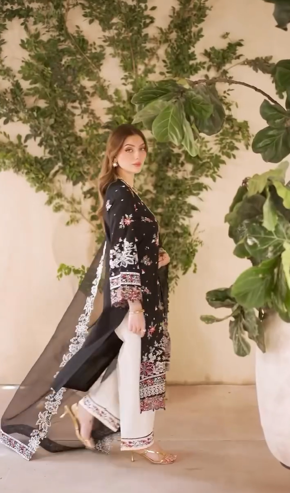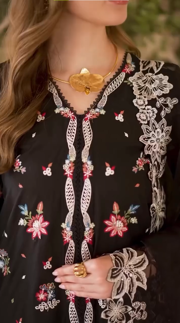 • Embroidered pa for front slits,daman and back on